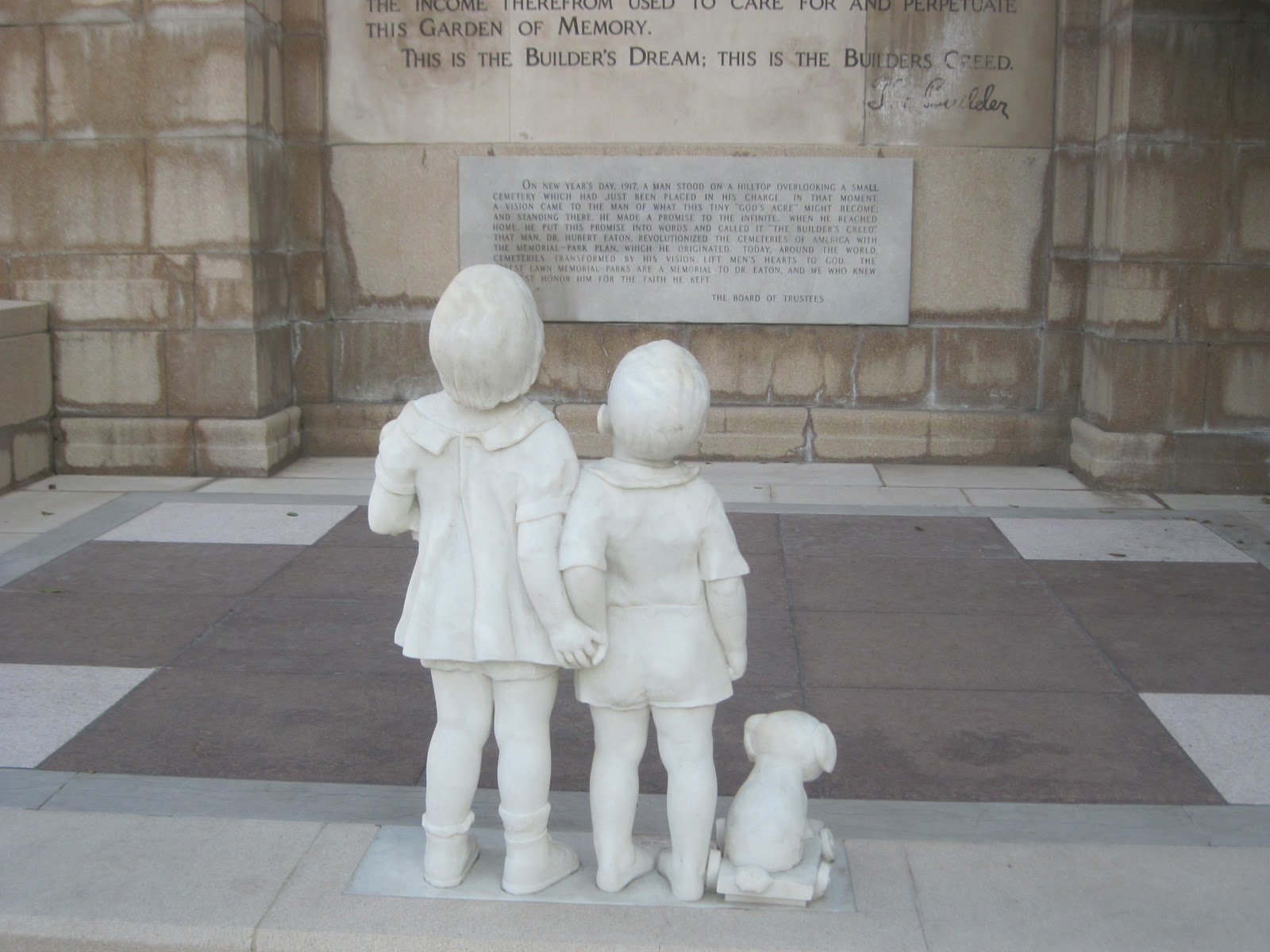 When Evelyn Waugh came to Hollywood in 1947 to discuss the film rights for Brideshead Revisited, he visited a graveyard: Forest Lawn Memorial Park. He had heard it praised as a place unsurpassed in beauty, taste, and sensitivity; a place where “faith and consolation, religion and art had been brought to their highest possible association.” But Mr. Waugh found the cemetery dripping with saccharine sentimentality, edged with macabre memorials, and repellent with cuteness. (Walt Disney’s remains, along with those of myriad other celebrities, are enshrined there.) Mr. Waugh found in that “theme-park necropolis” a grotesque denial of the reality of death, the opposite extreme of Donne’s holy sonnet. He found vulgar euphemisms marketed and crafted by entrepreneurial racketeers. He found, in the end, wonderful material for a story to satirize the bizarre American funeral-home industry.